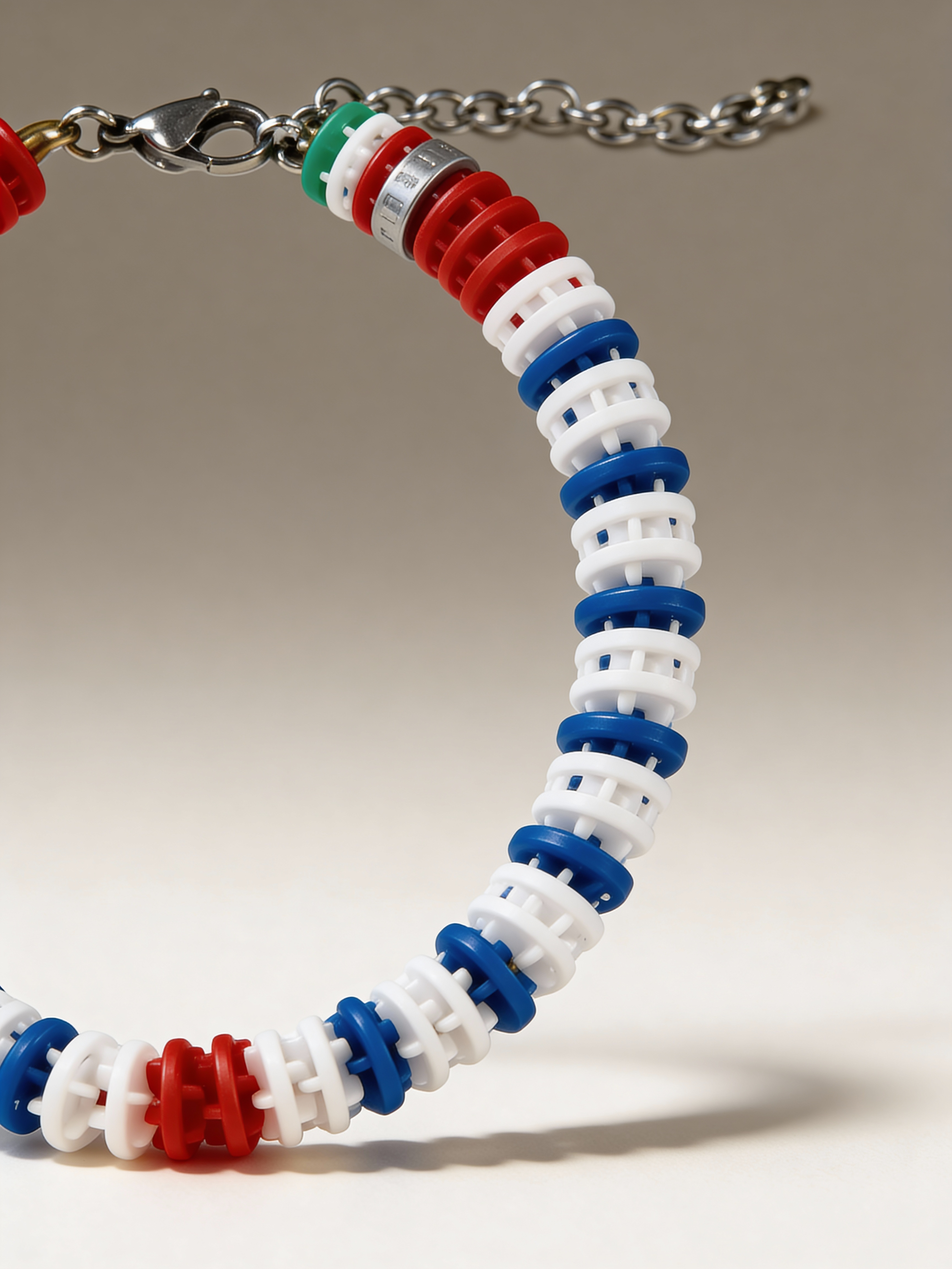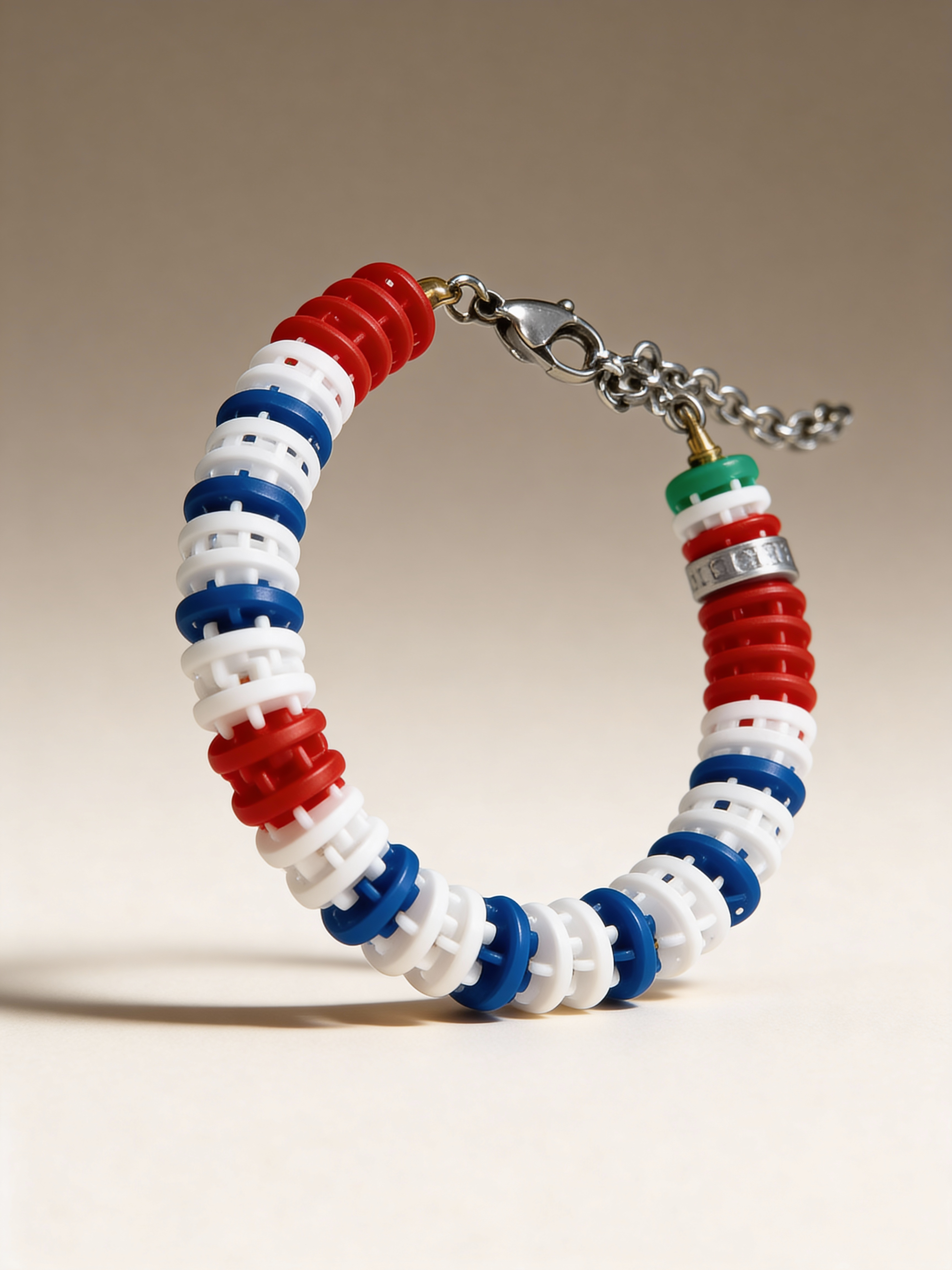 Armband Bahn Sieg 604 BONESWIMMER: marineblau/rot/weiß als Grundfarbe mit einem grünen Akzent, der den Verschluss ziert und dem Rhythmus mehr Dynamik verleiht.