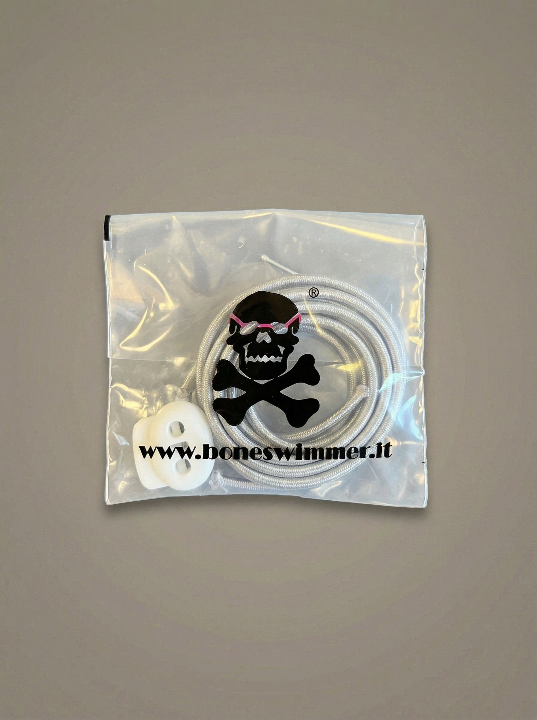 Elastische Schnur für BONESWIMMER-Schwimmbrillen, Farbe Weiß. Ein unverzichtbares Zubehör, um deine Schwimmbrille stilvoll und sicher zu befestigen, unterzeichnet von Athletic Couture.