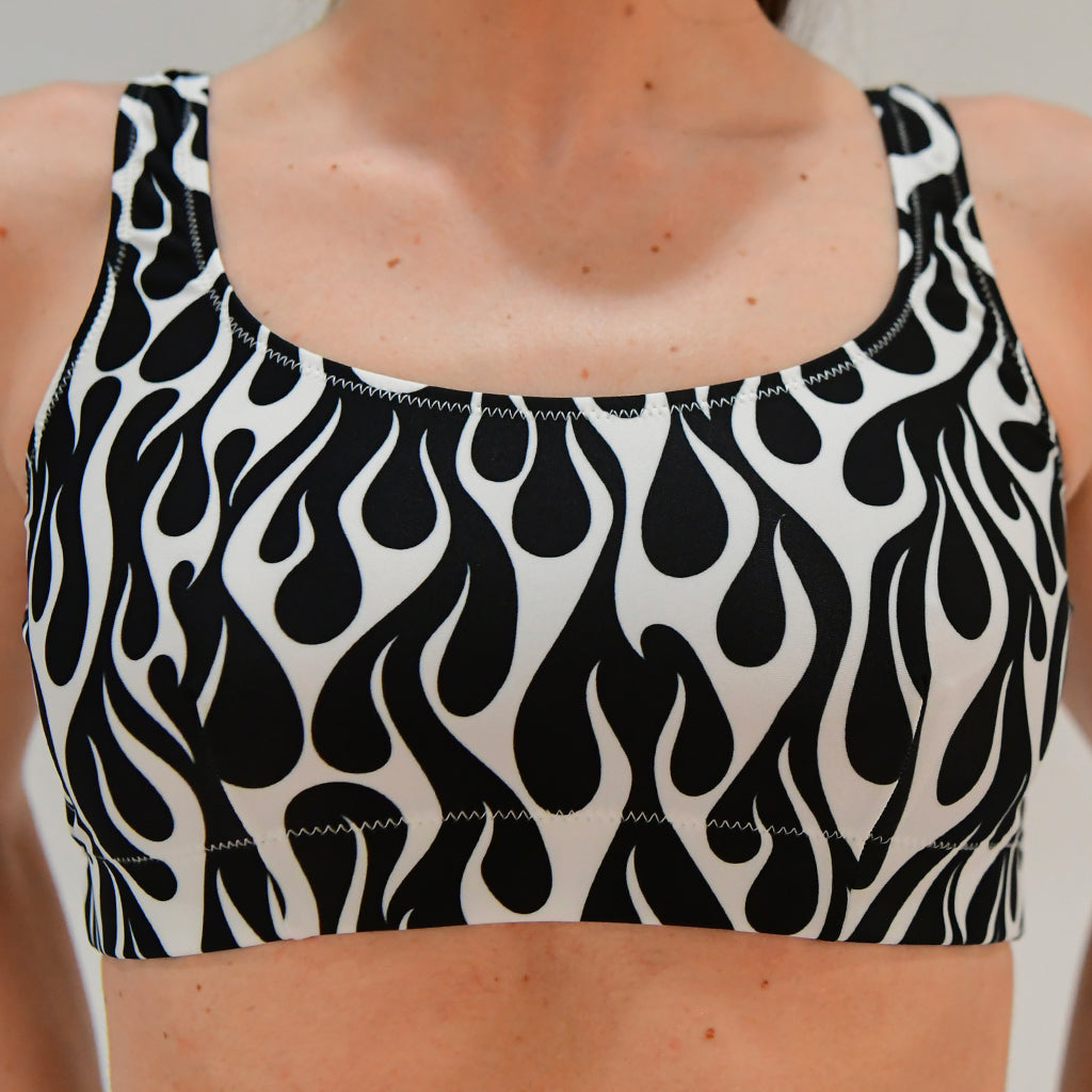 Aufdruck: weiße Flammen auf schwarzem Grund