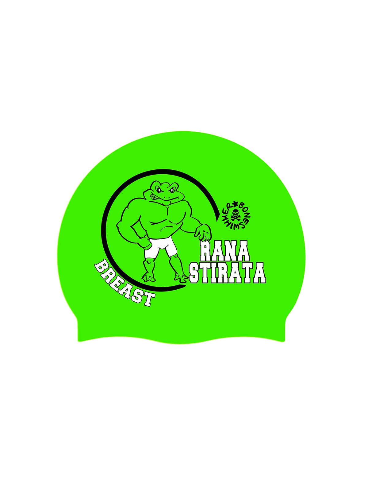 Schwimmkappe aus dickem Silikon, bedruckt in Neonfarben, passend zu unseren unconventional Badeanzügen.