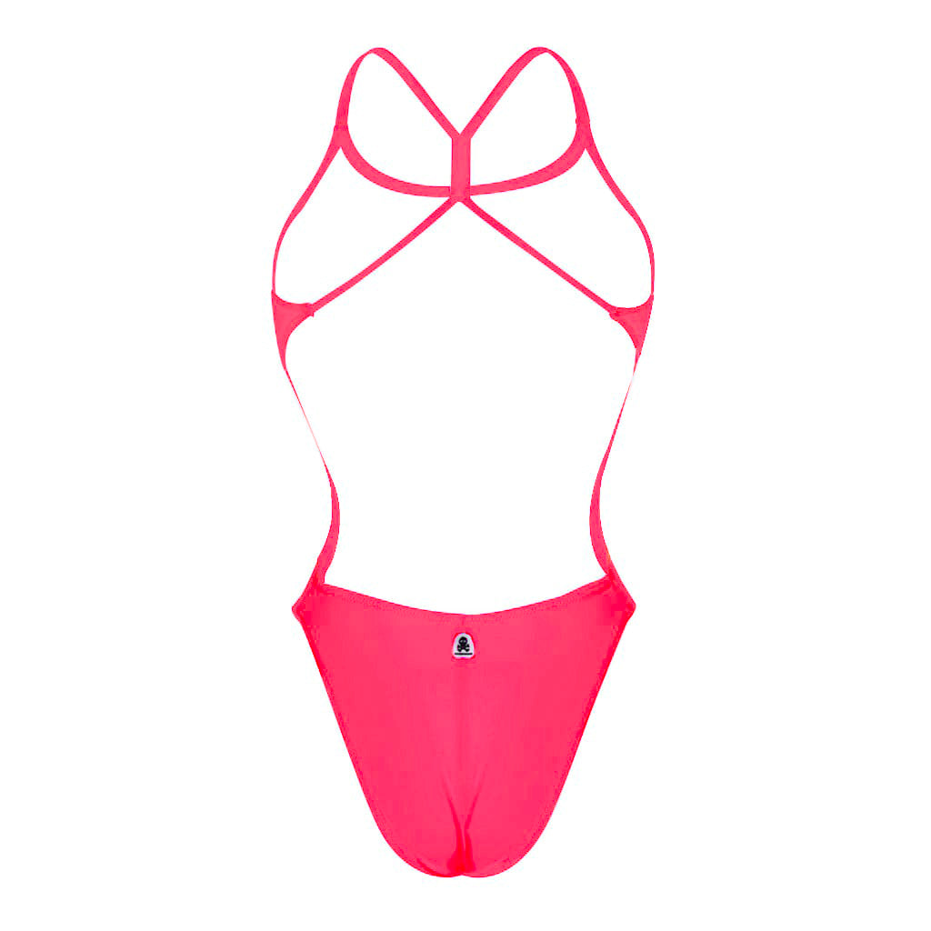 Einteiliger Badeanzug mit 2 dünnen Trägern, die am Rücken verbunden sind