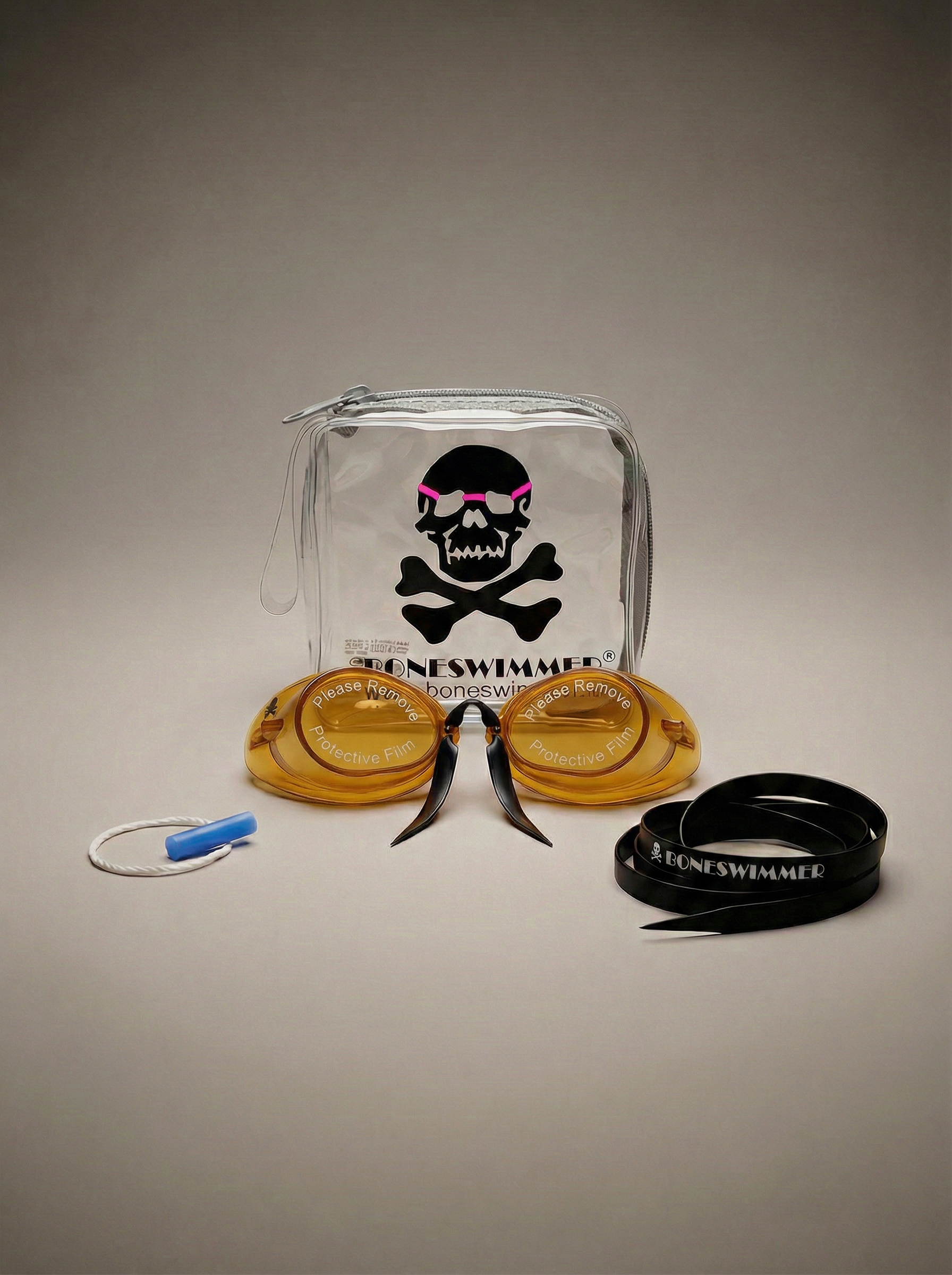 BONESWIMMER Schwimmbrille aus Schweden, orangefarben. Ikonisches Design und unschlagbare Leistung für Training und Wettkampf, mit einem weichen Silikonrahmen für überlegenen Tragekomfort.