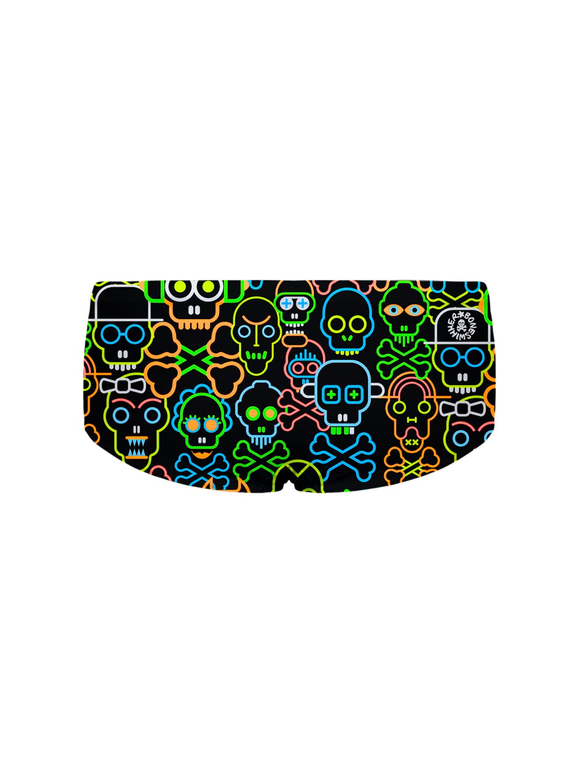 Trainings-Boxershort, Modell Ucla. „Skull tribe“-Print: Tribal-Muster, Neon-Schädel-Umrisse, stimmungsvolle Fluofarben.