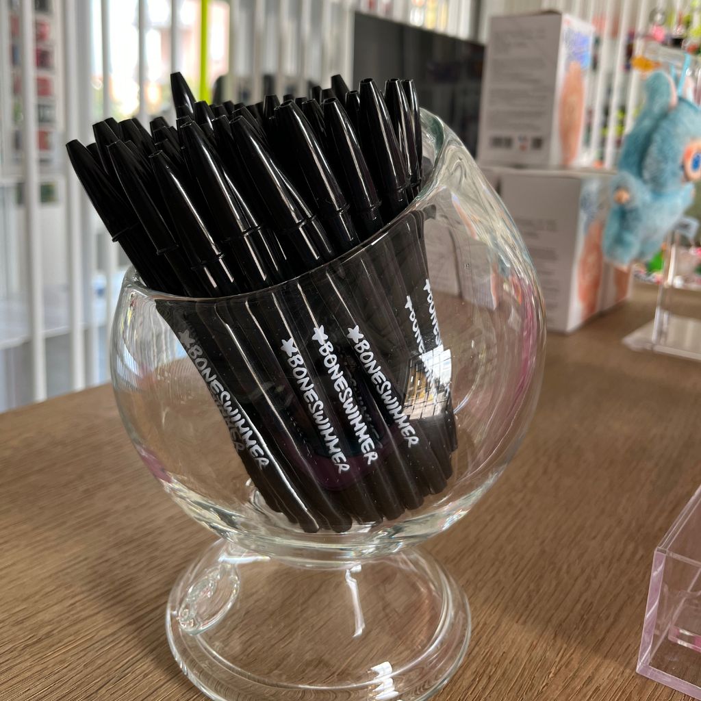 Kugelschreiber Bic mit schwarzem Kunststoffgehäuse und weißem, siebgedrucktem Boneswimmer-Logo. Ausgestattet mit ölbasiertem blauen Tinten für ein flüssiges und gleichmäßiges Schriftbild. Ergonomisches und leichtes Design für langanhaltende Nutzung ohne Ermüdung.