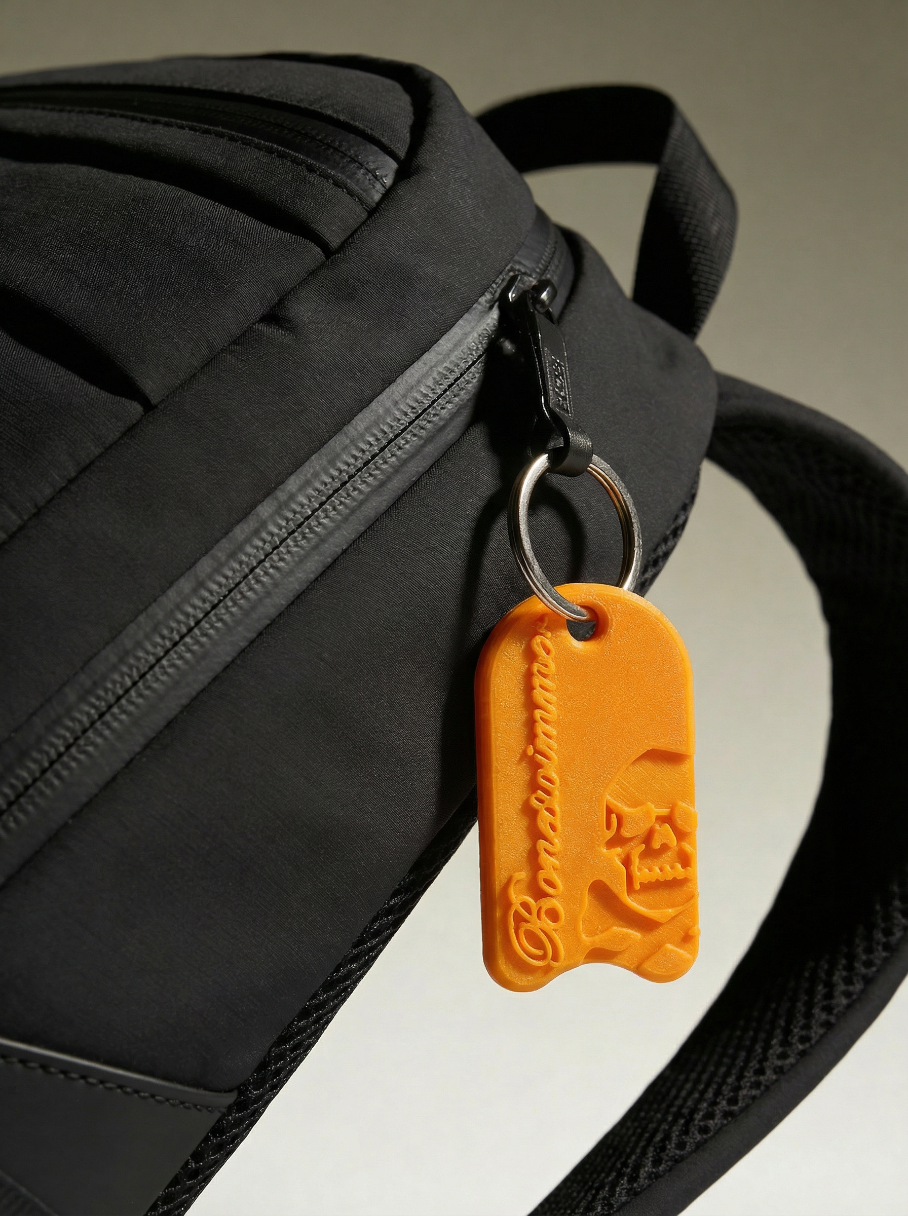 • Zum Befestigen an Schlüsseln, Rucksack oder technischer Tasche: ein grafisches Detail, kein Geräusch