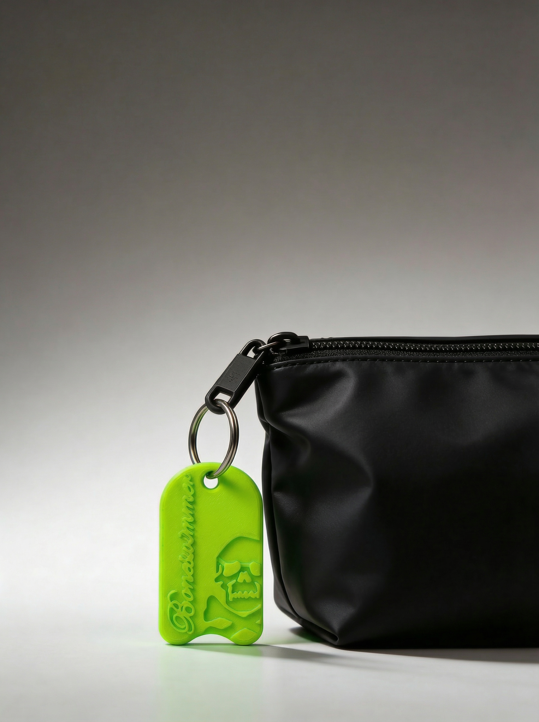 • Zum Befestigen an Schlüsseln, Rucksack oder technischer Tasche: ein grafisches Detail, kein Geräusch
