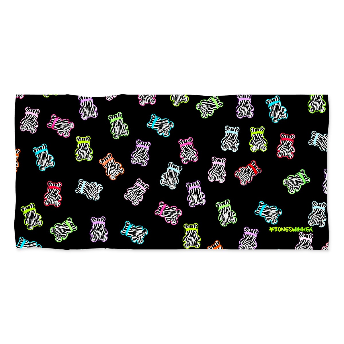Stil: Grafik mit poppigem und verspieltem Charakter, mit einem Muster aus stilisierten Bärchen im Zebramuster, das sich auf schwarzem Hintergrund wiederholt. Der Stil erinnert an die Ästhetik der Street Art und der Grafiken der 90er Jahre, mit Neonfarben und vibrierenden Linien, die einen dynamischen Look schaffen. Das Motiv – bunte und ironische Bärchen – fügt eine lustige und unbeschwerte Note hinzu, ideal für alle, die Persönlichkeit und Originalität auch im Schwimmbad ausdrücken möchten. Diese Kombination aus ansprechendem Design und lebendigem Druck macht die ABIBÒ-Linie perfekt nicht nur für den Wettkampfschwimmsport und das tägliche Training, sondern auch als ikonisches Kleidungsstück, um sich in aquatischen Umgebungen abzuheben.