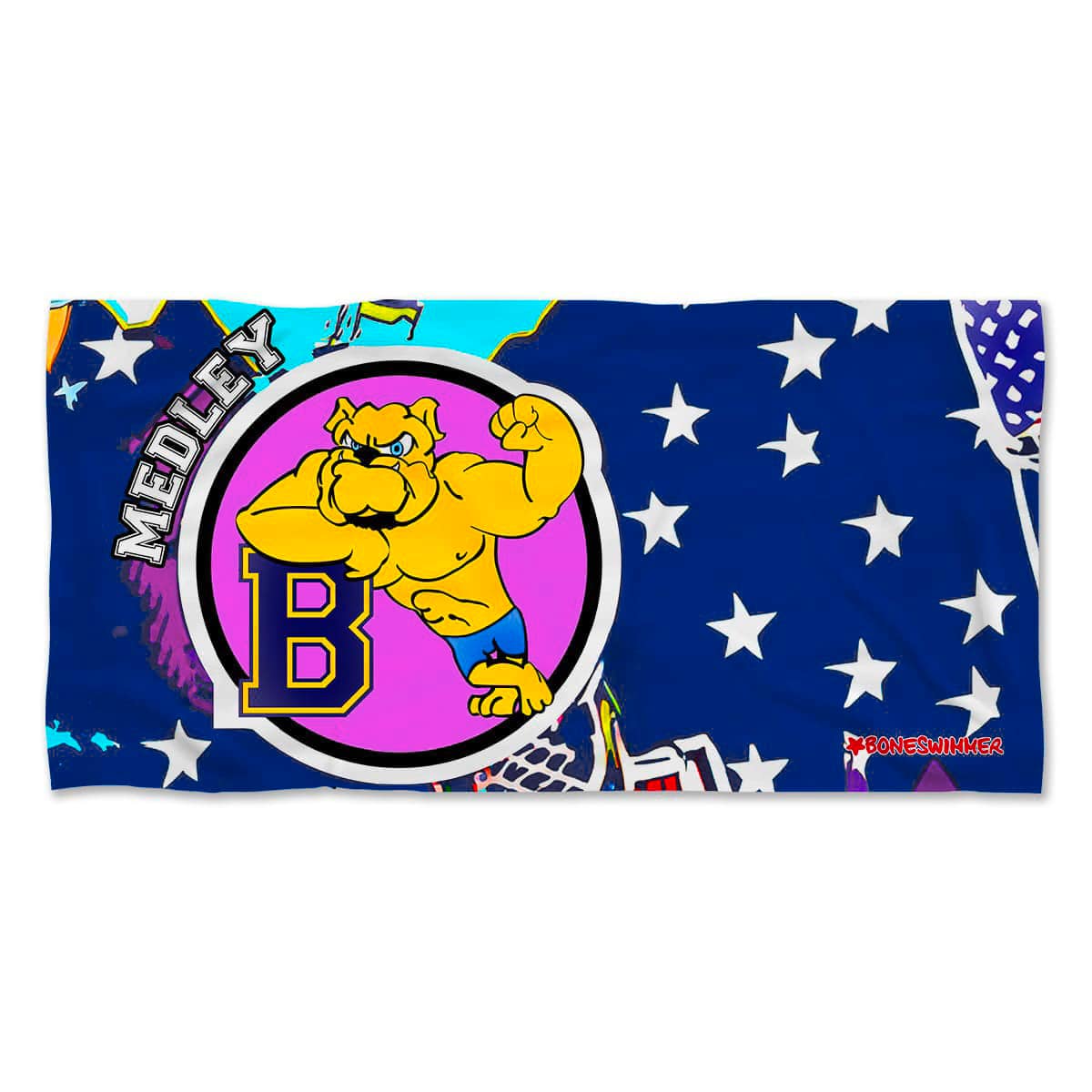 Stil: Die MEDLEY-Linie, zu der dieses Pooltuch gehört, ist für diejenigen gedacht, die im Lagenstil schwimmen, und richtet sich an Schwimmerinnen und Schwimmer, die eine Mischung aus Widerstandsfähigkeit, Komfort und Stil suchen. Das grafische Design mit dem ikonischen, entschlossenen Bulldog macht diese Linie einzigartig und unverwechselbar, ideal für alle, die Leistung und Charakter verbinden möchten.